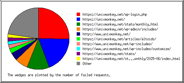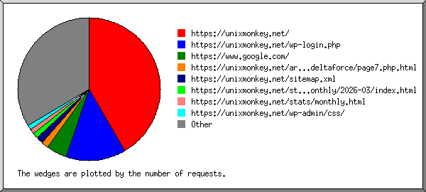 | 517 | 0.77% | Apr/17/26 3:03 PM | /wp-login.php?redirect_to=https://unixmonkey.net/wp-admin/index.php&reauth=1 |
